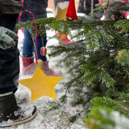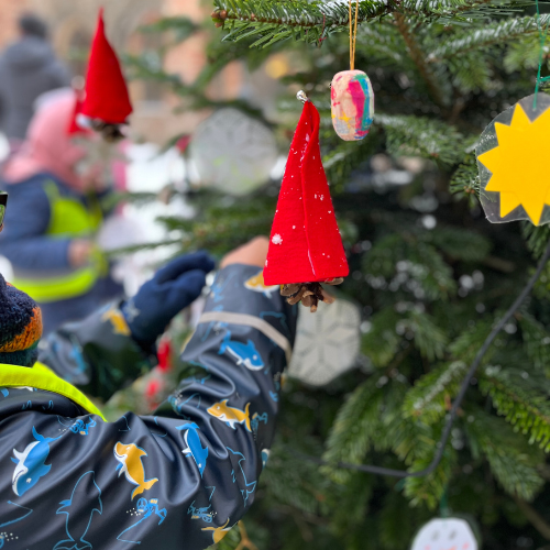 Am Freitag, den 01.12.2023, marschierten 35 Kinder sowie 5 Erzieherinnen der Kita Stadtfeld zum Rathaus. Mit leuchtenden Augen und voller Stolz konnten die Kinder, gemeinsam mit Bürgermeister Stephan Dose, selbst hergestellten Weihnachtsschmuck an zwei Weihnachtsbäumen aufhängen. Im Anschluss gab es eine kleine Stärkung in Form von Saft, Obst und Lebkuchen.