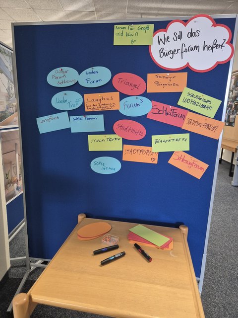 Die Sitzung markiert den Start der Bürger*innenbeteiligung zur Namensfindung des Forums. Besucher*innen konnten ihre Vorschläge direkt vor Ort einbringen. Darüber hinaus gibt es weiterhin die Möglichkeit, Ideen in der Stadtbücherei abzugeben: Die Stellwand wurde im Verbuchungsbereich aufgestellt und die neuen Visualisierungen ergänzt. Am Tag der Demokratie, 28. April, wird eine weitere Sammlung von Vorschlägen angeboten.