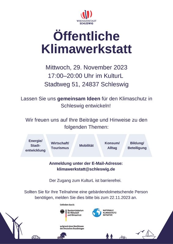 Wir freuen uns über Ihre Anmeldung unter der E-Mail-Adresse: klimawerkstatt[at]schleswig.de